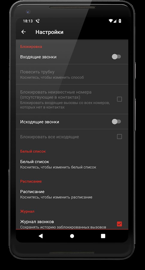 Заблокированные номера отображаются в журнале. Журнал можно отключить, и вы никогда не узнаете о входящем нежелательном вызове. Также в настройках можно отключить только уведомления о блокировках, при этом журнал будет продолжать работать. Предусмотрена возможность экспорта журнала.