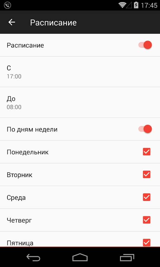 В приложении вы можете задать расписание как для всего чёрного списка, так и для отдельного номера или группы номеров.
