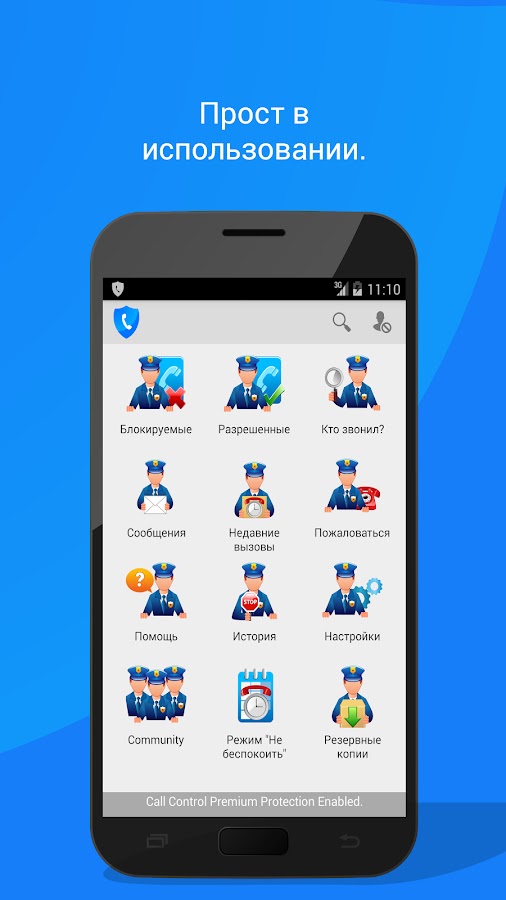 Приложение с набором функций для блокировки звонков и возможностью использования Community Blacklist — черного списка, поддерживаемого сообществом пользователей. Данное приложение блокирует телефонные звонки и текстовые сообщения согласно персональному черному списку. В то же время, использование Community Blacklist позволяет защититься от назойливых входящих вызовов от телемаркетеров, коллекторов и спамеров. Простое в использовании и очень эффективное приложение Call Control – лучшее из доступных на сегодня для блокировки нежелательных звонков и текстовых сообщений!