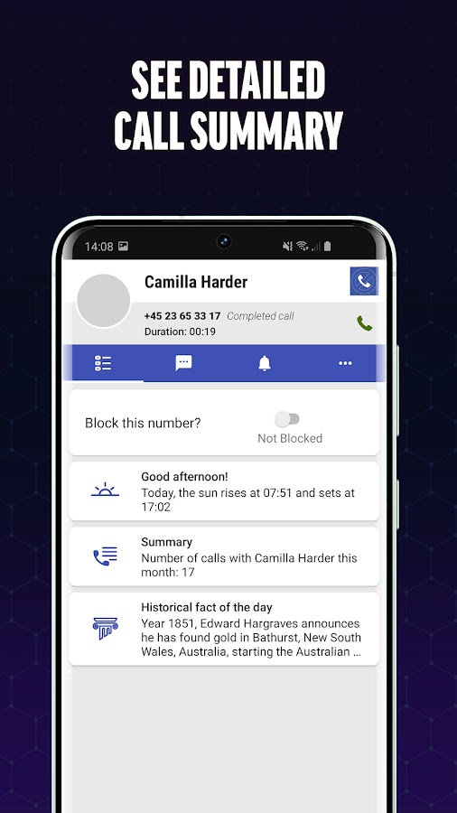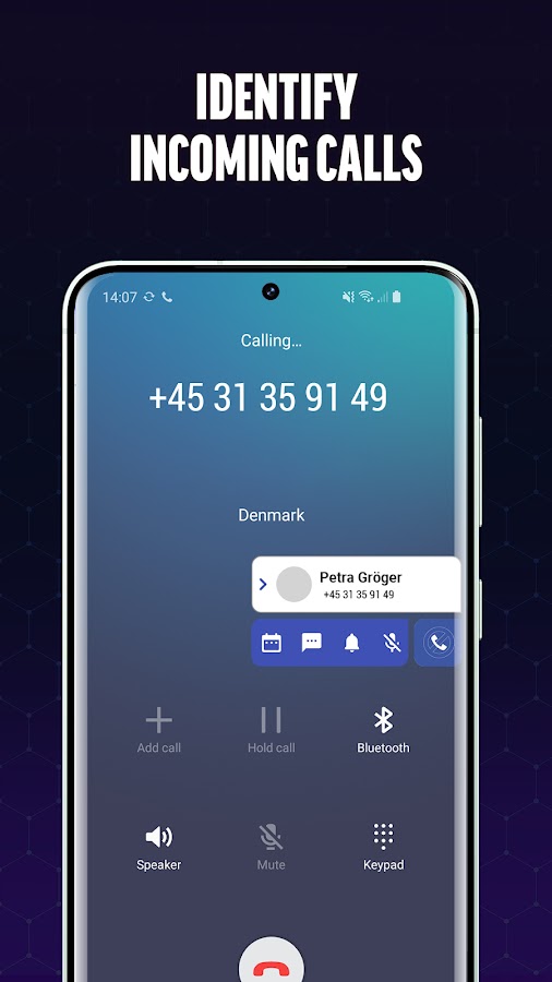 Интересен неизвестный номер? Наше приложение обеспечивает идентификацию вызывающего абонента в режиме реального времени, что дает вам возможность принять или отклонить вызов. Никогда больше не задавайтесь вопросом, кто на другом конце провода; наше приложение гарантирует, что вы всегда будете в курсе.