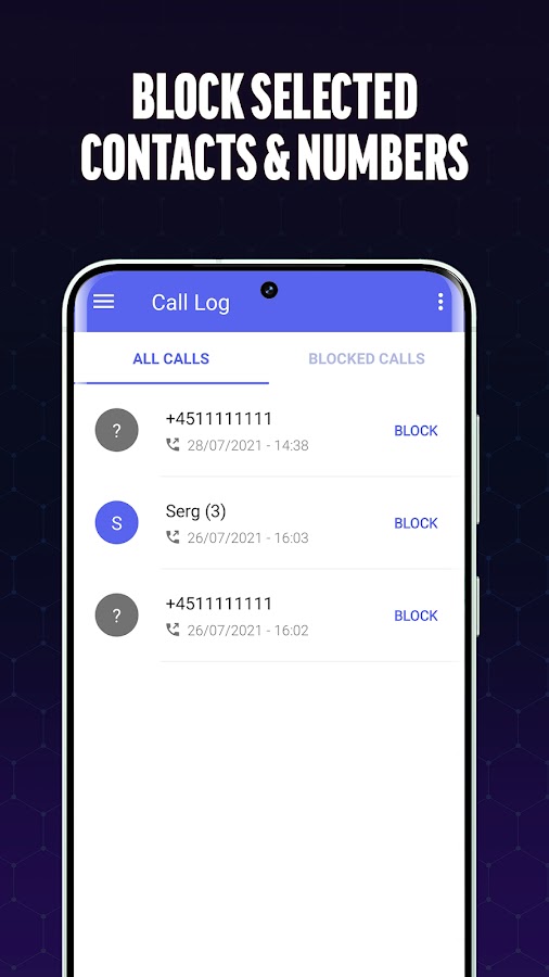 Приложение «Блокировка вызовов» — это ваш личный привратник, тщательно фильтрующий входящие вызовы, чтобы идентифицировать и блокировать номера спама, прежде чем они достигнут вас. Благодаря технологии фильтрации Call Blocker вы можете быть уверены, что вам больше не придется сталкиваться со спам-звонками.