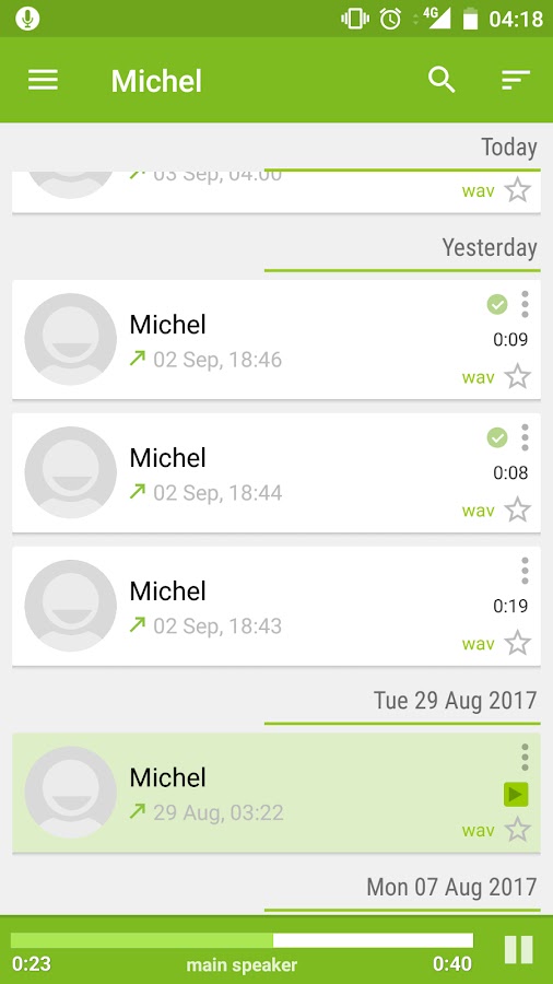 — Проигрывание записей через основной динамик или телефонный
