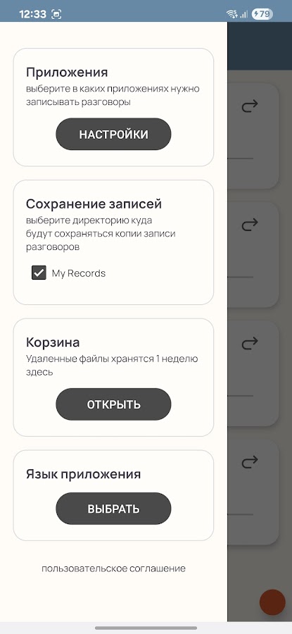 — Сохраняйте записи во внешнюю память устройства — экономь место и получай быстрый доступ к файлам.