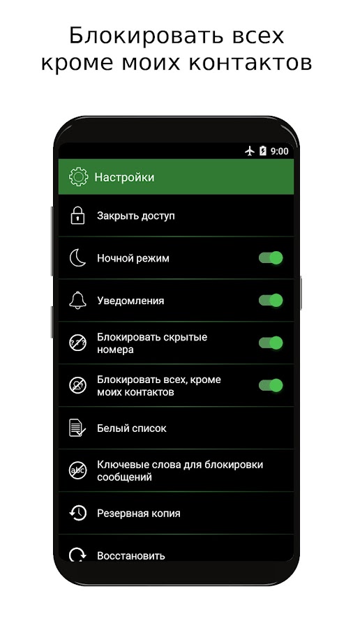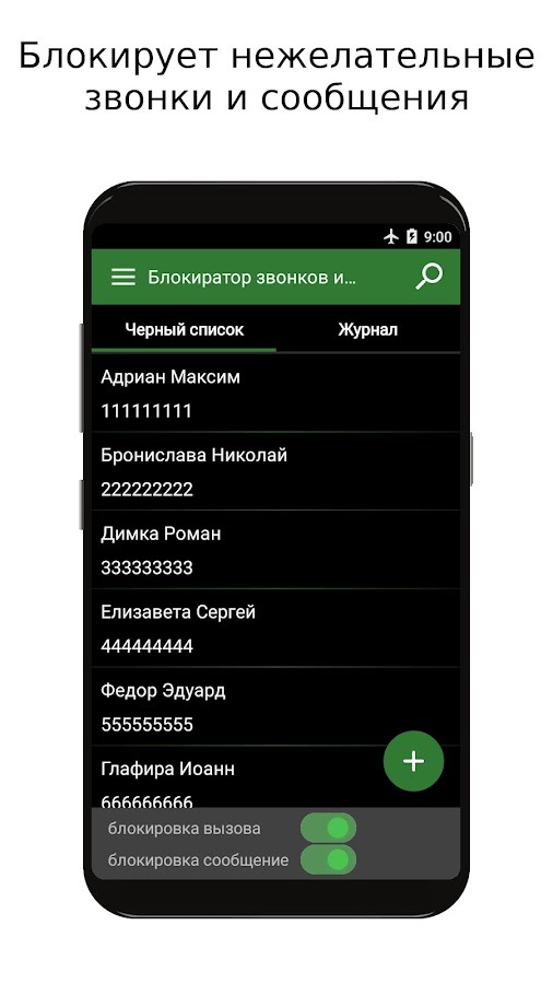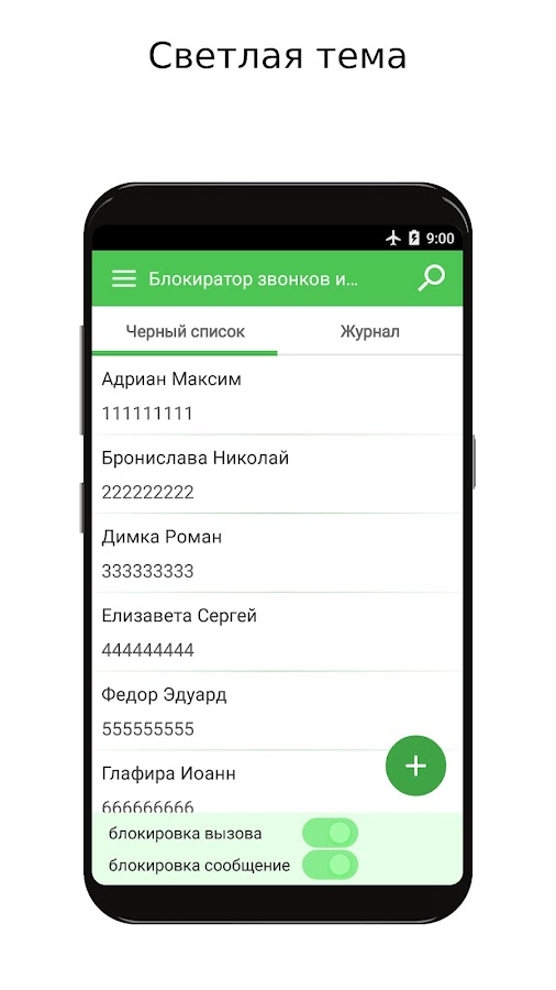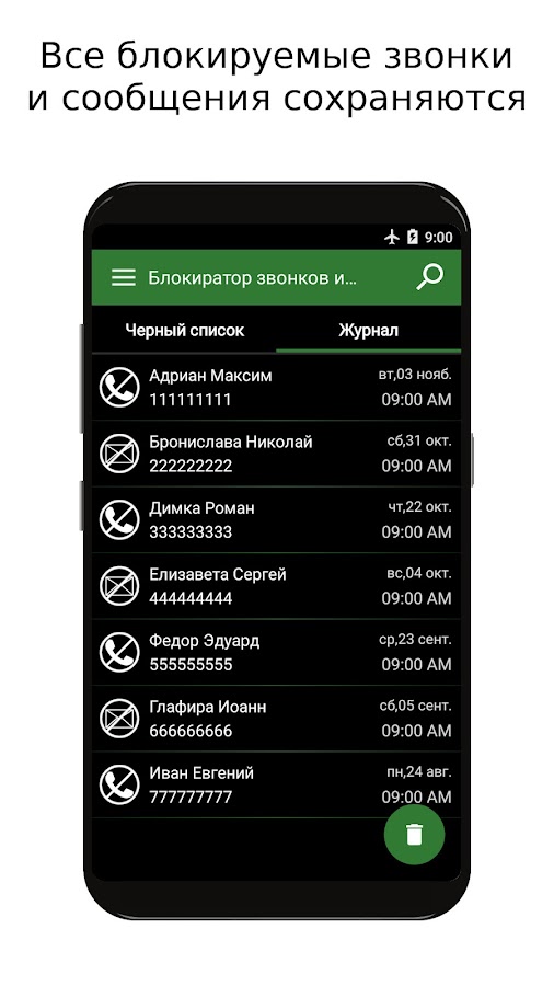 * Блокировка спама для звонков путем добавления номеров телефонов в черный список.
