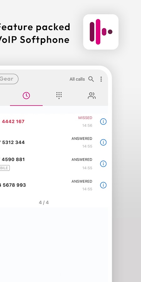 Приложение CallGear для Android позволяет принимать входящие и совершать исходящие телефонные звонки на мобильных устройствах.