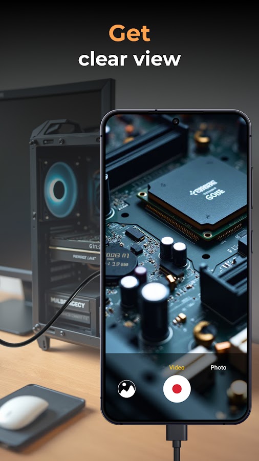 С приложением Камера Эндоскоп ваш смартфон превращается в продвинутый инструмент для осмотра. Теперь вы можете управлять внешней камерой, исследовать узкие трубы, осматривать мелкие детали сломанных устройств или проверять труднодоступные участки.