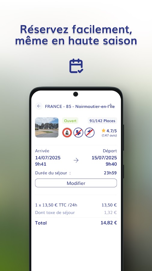 С помощью Camping-Car Park вы легко найдете и получите доступ к безопасным и оборудованным местам, доступным для самообслуживания 24 часа в сутки, 7 дней в неделю. Воспользуйтесь преимуществами большой сети, уникальной в Европе, насчитывающей более 600 зон, и путешествуйте в полной свободе с помощью простого и интуитивно понятного приложения.