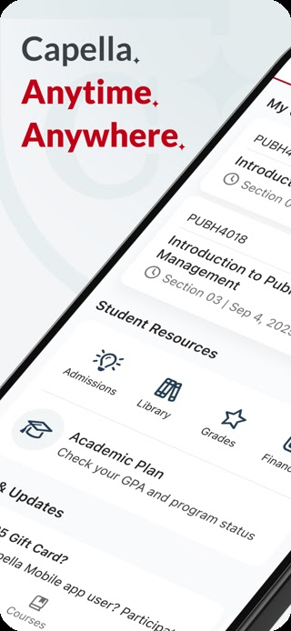 Мобильное приложение Capella обслуживает студентов, обучающихся в Университете Капелла, и требует входа в университет. Это позволяет занятым, работающим профессионалам следить за своей программой, последними событиями в своих курсах и выполнять легкую работу в пути. Capella Mobile объединяет деятельность кампуса, программы и курсов в одном удобном приложении.
