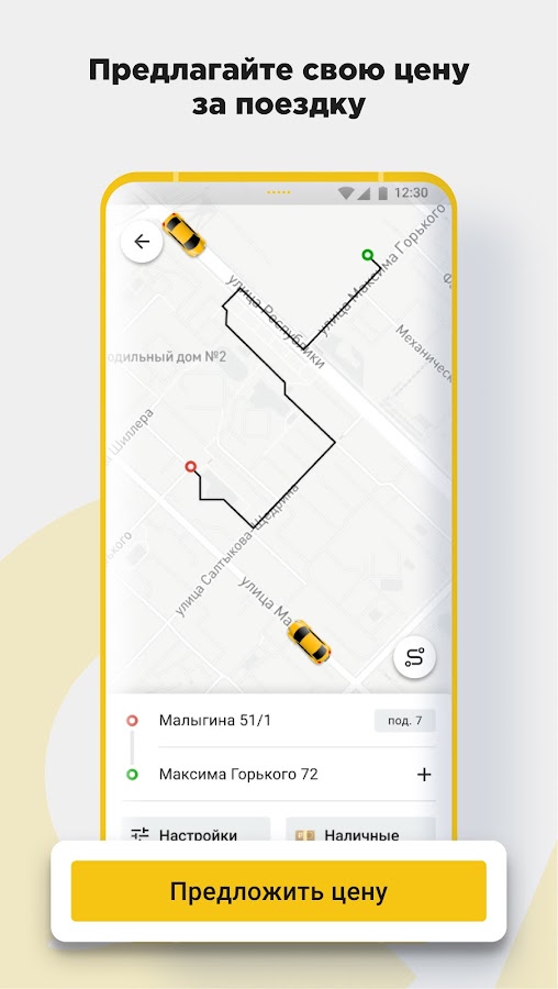 Устанавливайте приложение, забивайте маршрут и сами назначайте справедливую цену за поездку.