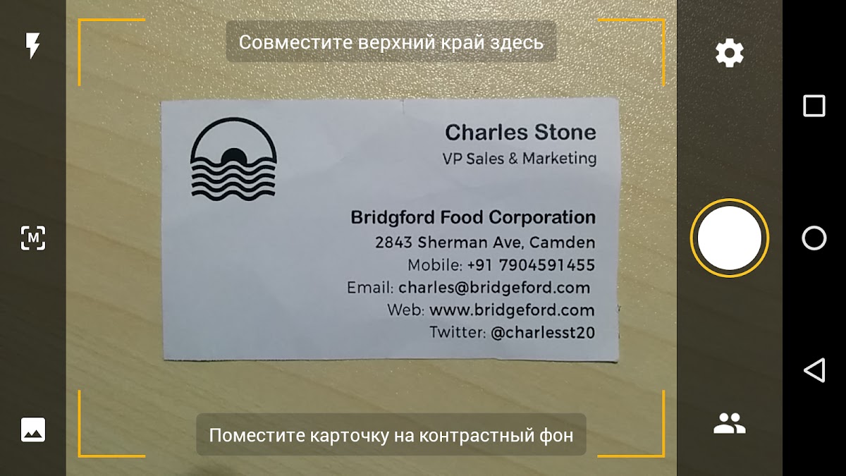 Для достижения наилучших результатов фотографировать визитные карточки следует в условиях хорошего освещения.