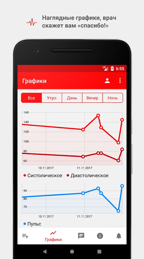 ★ Сохранять и отображать введенные вами данные — артериальное давление, пульс