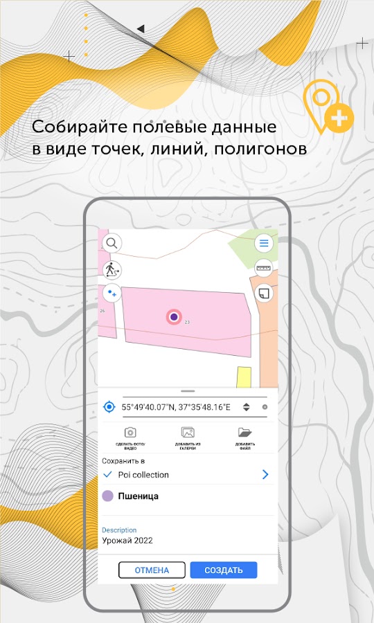 — Создавайте и редактируйте на карте объекты в виде точек, линий и полигонов.