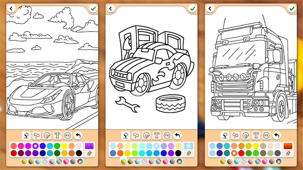 Бесплатная и простая в использовании раскраска автомобиля страницы игры. Книжка-раскраска, полная автомобилей, грузовиков, тракторов и других транспортных средств. Веселая творческая игра для всей семьи.