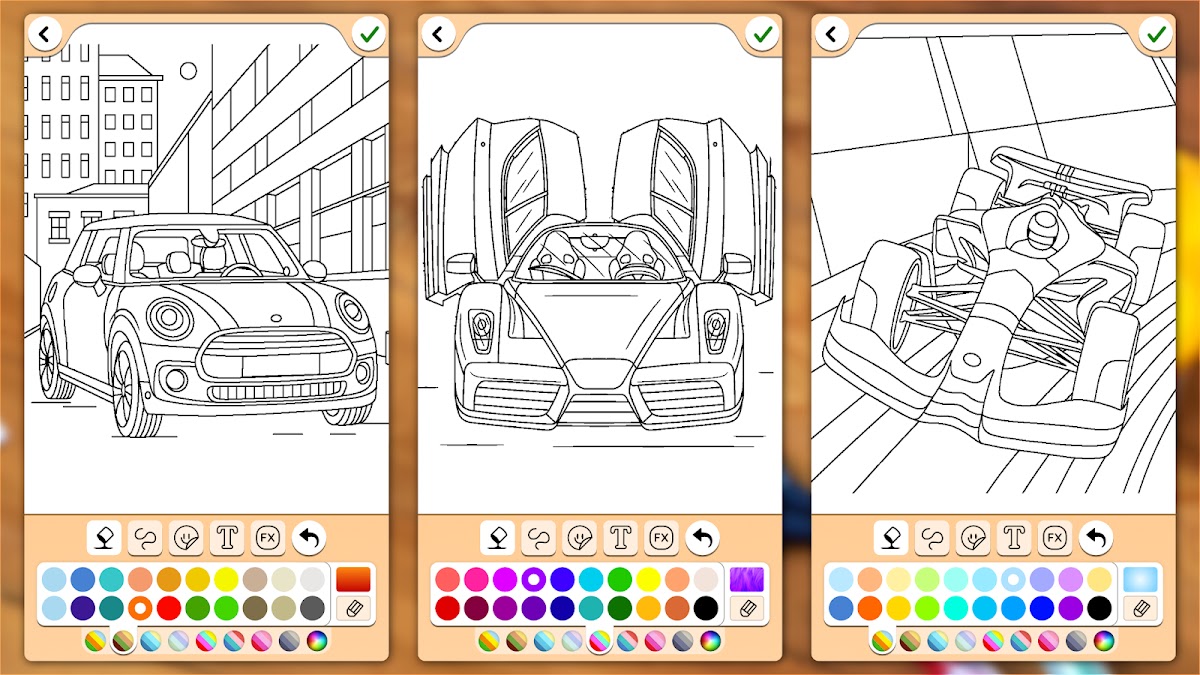 С раскраской страниц различной сложности эта игра подходит как для детей, так и для взрослых.