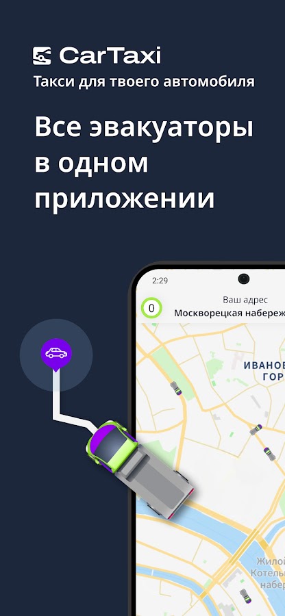 Скачайте приложение CarTaxi — заказ эвакуатора для Android бесплатно - последняя версия (4.4.1) уже доступна для установки на ваш телефон или планшет.