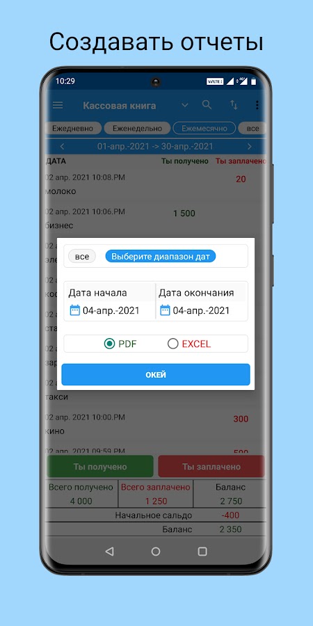 📈 Профессиональные отчёты: Создавайте и делитесь подробными финансовыми отчётами в формате PDF или Excel. Идеально для анализа, налогового периода или обмена с партнёрами.