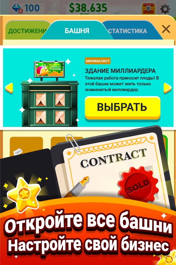 • Заработайте денег, чтобы обновить свою деловую башню. Чем больше денег, тем лучше и внушительнее будет башня!