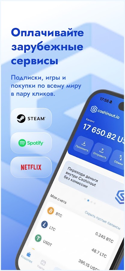 Тратьте крипту в реальной жизни с Cashinout. Оплачивайте покупки по СБП QR, выводите средства в рубли, выпускайте виртуальные USD-карты для международных платежей и переводите деньги внутри сервиса — быстро, понятно и в одном приложении.