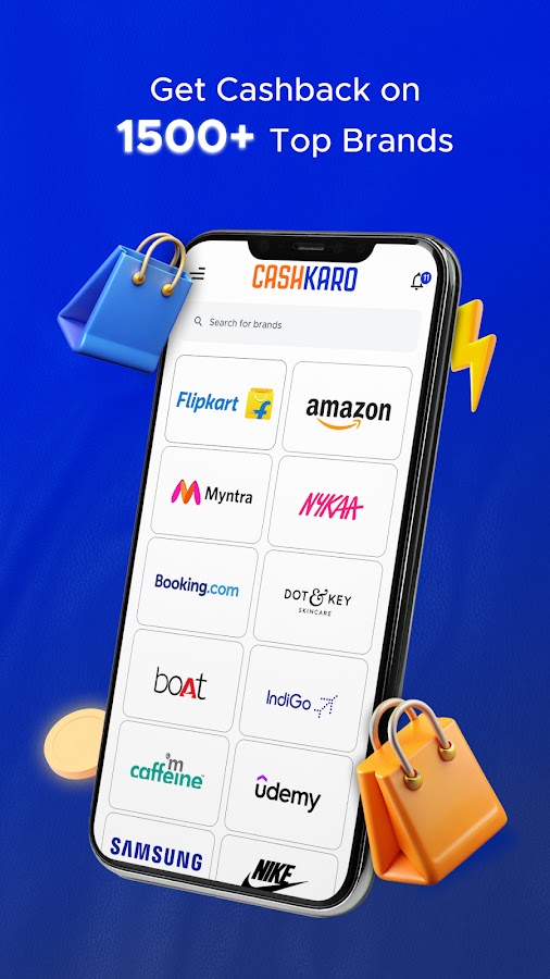 Загрузите CashKaro и получите до 50 % кэшбэка для более чем 1500 брендов через приложение Cashback №1 в Индии и переведите его в свой банк.