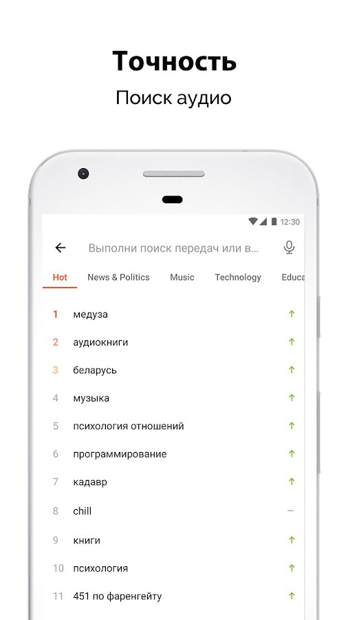 — Находите новые и набирающие популярность подкасты из 16 различных категорий.