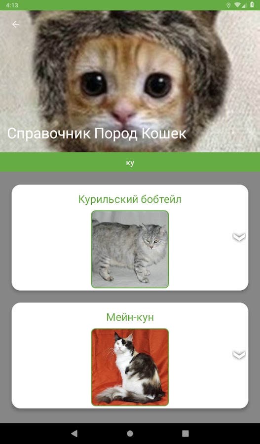 Скачайте приложение Определитель породы кошек для Android бесплатно - последняя версия (0.5.2) уже доступна для установки на ваш телефон или планшет.