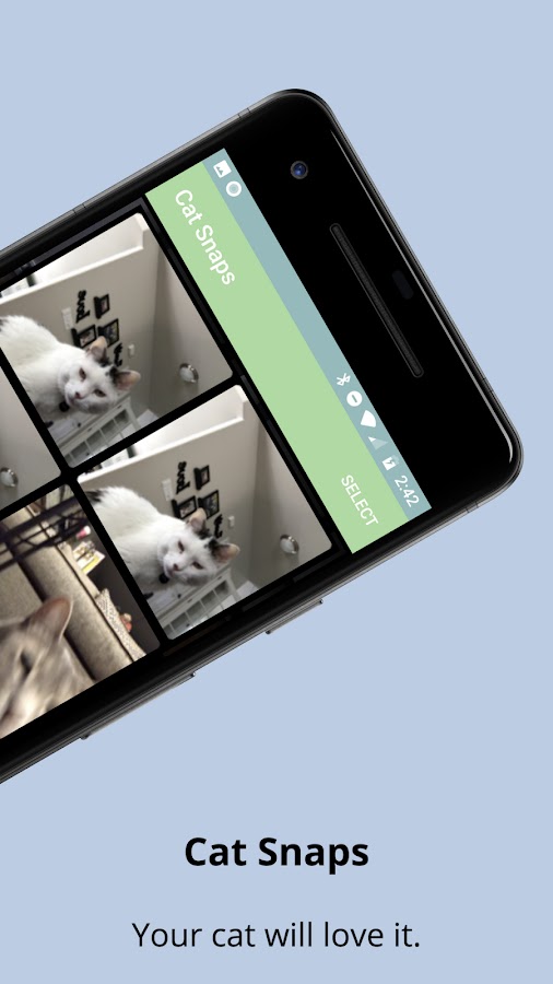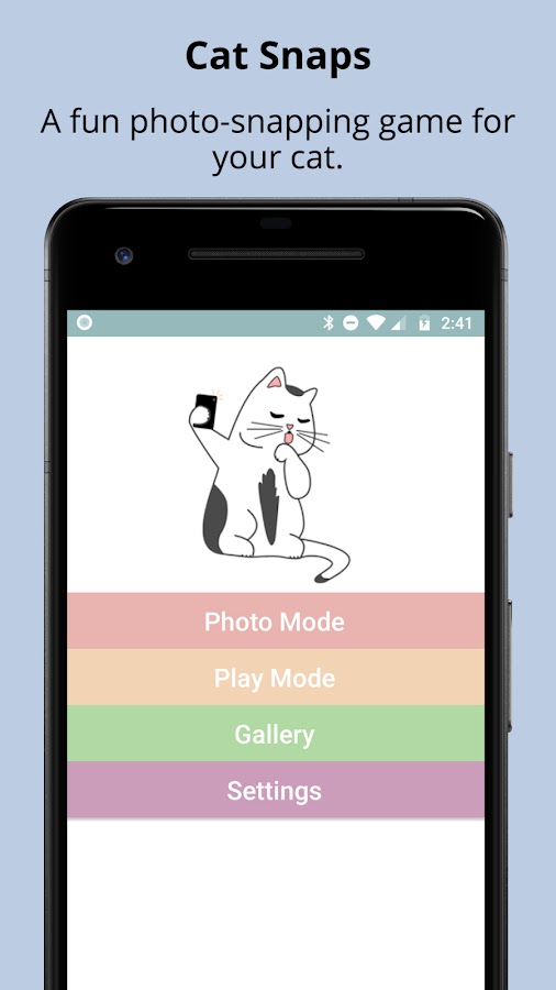 Cat Snaps позволяет делать фотографии вашей кошки прямо в лапах вашей кошки. Позвольте вашей кошке сыграть в простую игру, и когда ваша кошка коснется экрана, Cat Snaps сделает забавную и уникальную фотографию вашей кошки.