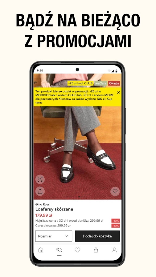 ✔ Лучшие бренды в одном месте — Reebok, New Balance, Lasocki, Hunter, Puma, Vans, Adidas и многие другие. ✔ Эксклюзивные акции — приветственный код скидки и предложения только для пользователей приложения. ✔ Бесплатная доставка – от 230 злотых. ✔ Быстрая проверка размера – отсканируйте код и узнайте, есть ли в магазине модель вашей мечты. ✔ Поиск изображений и сканер штрих-кода — найдите свои любимые продукты за считанные секунды. Членство в MODIVOclub: присоединяйтесь к MODIVOclub в CCC и откройте еще больше преимуществ — получите доступ к лучшим акциям CCC, а также к акциям, предлагаемым нашими партнерами — Costa Coffee, Empik Premium, Electrolux, Modivo и другими!