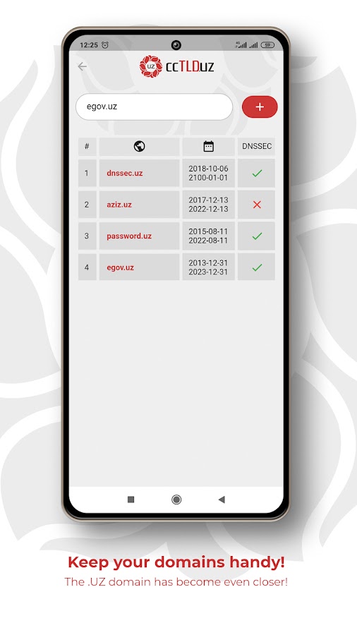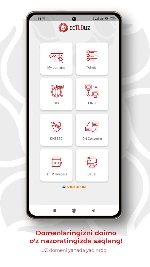 Используй мобильное приложение ccTLD.uz для контроля срока своего доменного имени, а также используй другие полезные инструменты!