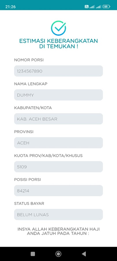 Если у вас возникнут какие-либо проблемы, пожалуйста, повторите попытку позже. Это приложение является источником данных, связанным с Министерством хаджа и умры Индонезии по адресу https://haji.go.id/