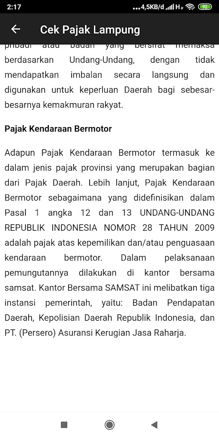 Даже если вы хотите купить подержанный автомобиль или мотоцикл с номерами Лампунг. Таким образом, это приложение налоговой информации Лампунга может помочь вам увидеть подробную информацию о транспортном средстве, а также о задолженности по налогам, которая у него есть в настоящее время. Способ довольно простой, вам нужно лишь ввести номер автомобиля в приложение. И данные появятся сами собой.