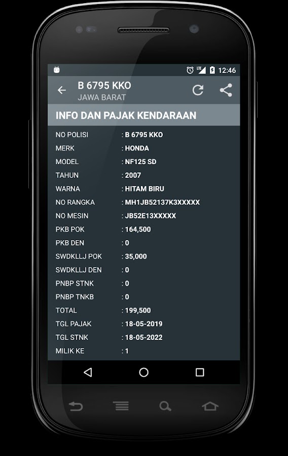 Это приложение также отображает данные номерного знака транспортного средства по всей Индонезии, пожалуйста, войдите в меню кода лицензии