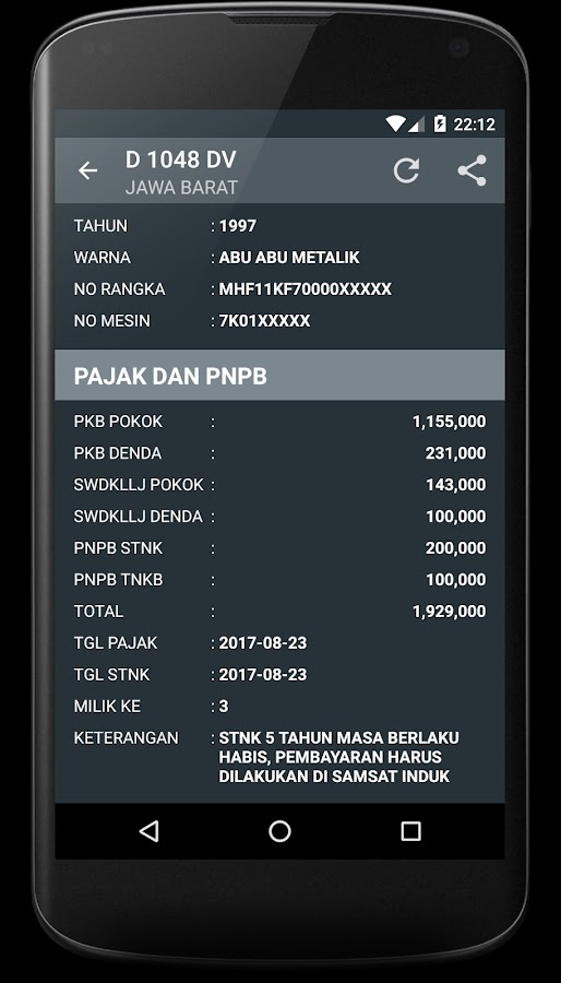 Скачайте приложение Cek Pajak Kendaraan для Android бесплатно - последняя версия (0.4.3) уже доступна для установки на ваш телефон или планшет.