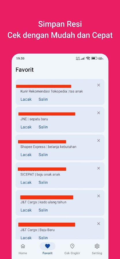 Поиск квитанций или отслеживание посылок упрощает проверку посылок. При поддержке многих популярных служб доставки или экспедиции в Индонезии вы можете отслеживать посылки в одном приложении легко, просто, быстро и более подробно.