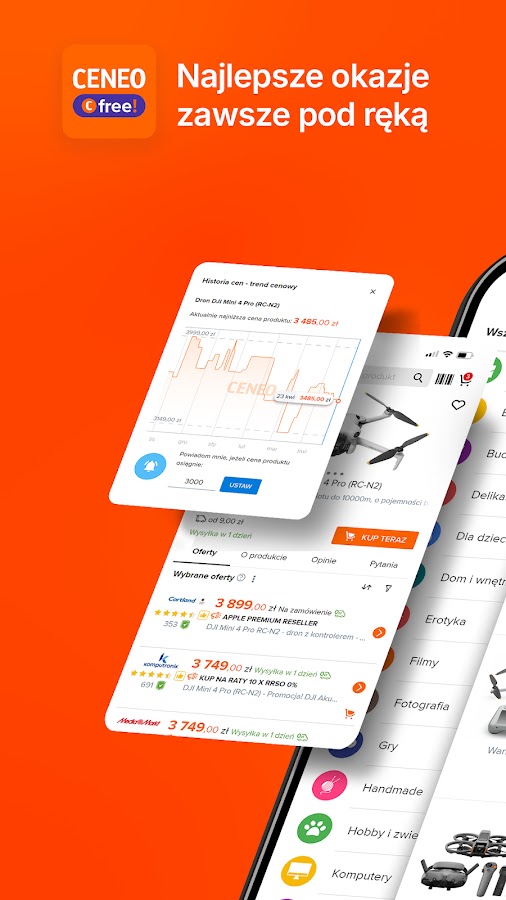 Загрузите приложение Ceneo и управляйте своими покупками в одном месте — удобно и всегда под рукой.