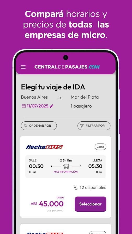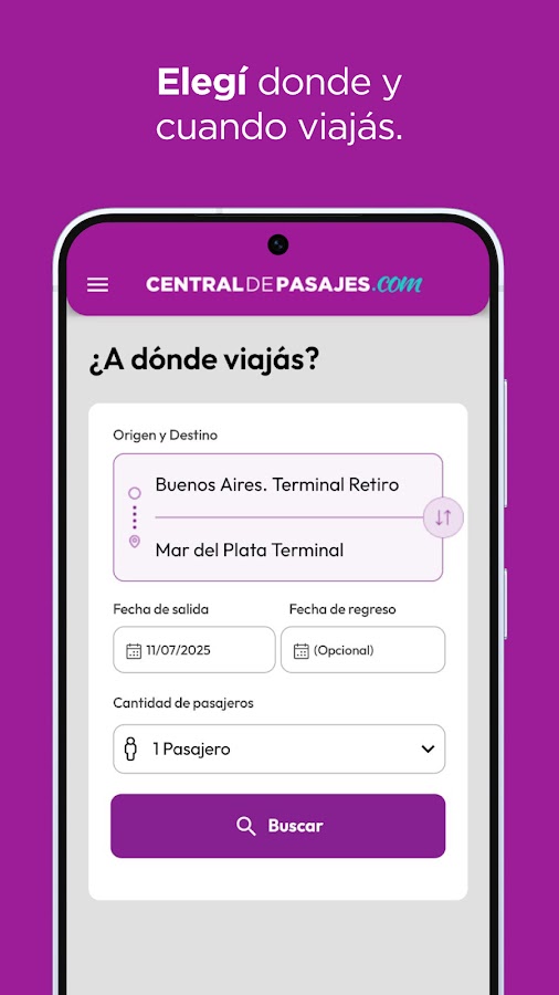 Central de Pasajes — компания с более чем 20-летним опытом продажи автобусных билетов, обслуживающая более 3000 направлений в Аргентине, Боливии, Бразилии, Чили, Парагвае, Перу и Уругвае.