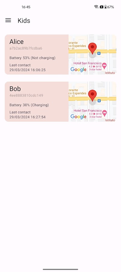 📍 Поддержка в реальном времени: Оставайтесь на связи с местонахождением ваших детей. Наша функция отслеживания местоположения позволяет вам мониторить их перемещения и даже устанавливать «безопасные зоны» (геозоны) для мгновенных уведомлений, когда ваш ребенок входит или выходит из определенных мест.