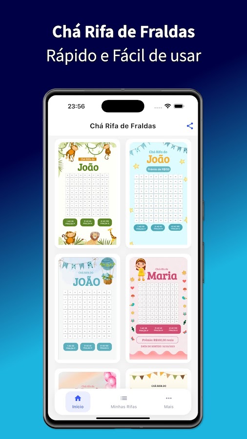 Chá Raffle de Fraldas — идеальное приложение для тех, кто хочет устроить практичный, веселый и незабываемый детский праздник. Загрузите сейчас и откройте для себя все возможности, которые может предложить наше приложение!