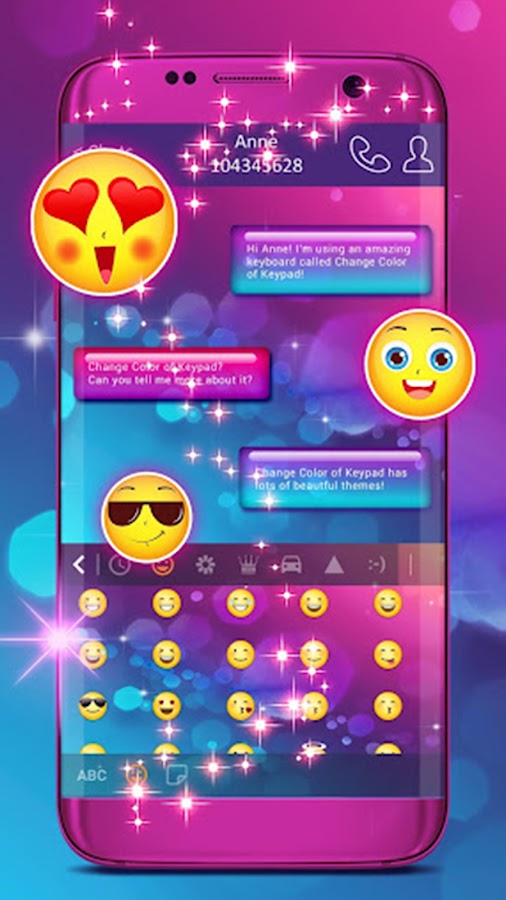 Это красочное приложение для клавиатуры персонализирует и преобразит ваш телефон, сделав его уникальным. Замечательные темы и дизайны были созданы специально для вас. Новые цвета заставят вас улыбнуться и почувствовать себя хорошо. Наша эксклюзивная коллекция наклеек выделит вас в общении с друзьями.