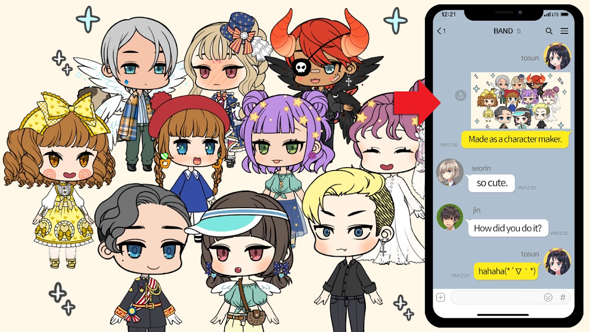 ★ Похвастуйтесь созданными персонажем и фоном в социальных сетях.