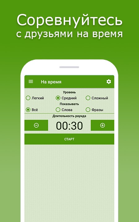 Задав условия случайного выбора и нажав на кнопку «показать» на экране появится слово или фраза, которые необходимо показать только жестами и мимикой. Остальные игроки должны угадать.