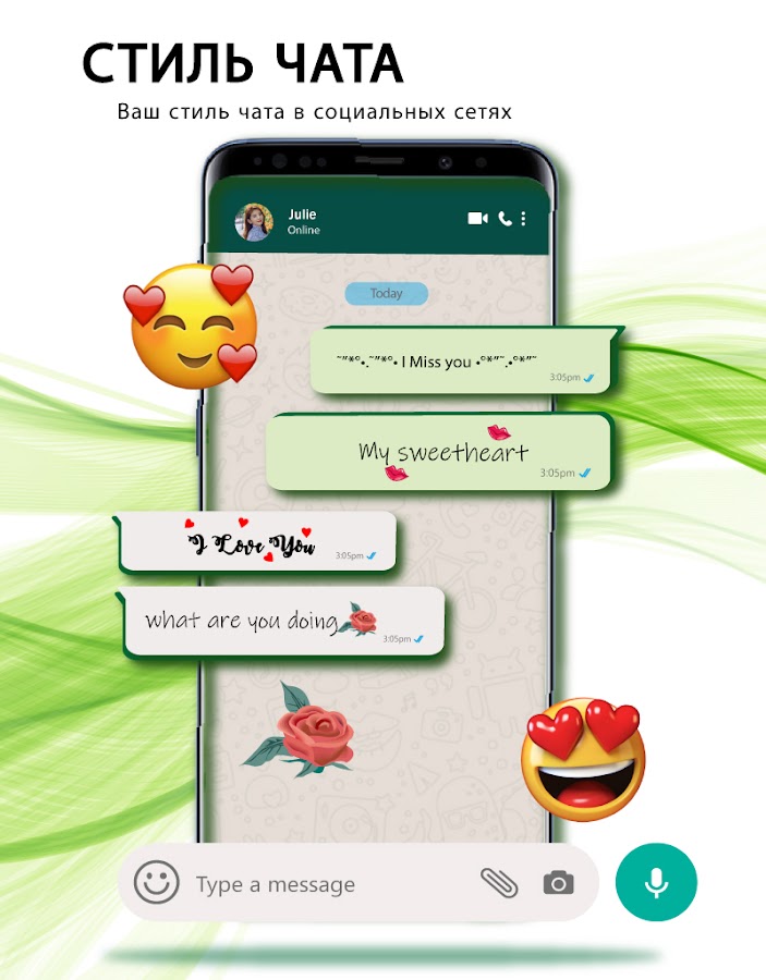 Измените стиль чата, используя необычный текст и стиль шрифта чата. Напишите стильный текст, используя стилистический шрифт и смайлики, и отправьте сообщение стилиста своему другу и семье.