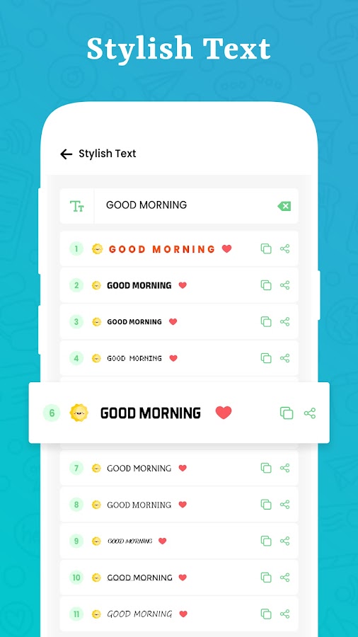 • Стильный текст — безграничные возможности для создания стильного текста и искусства и обмена ими в вашем любимом чат-приложении, таком как WhatsApp, Snapchat, Instagram, Facebook, Hangouts и любом другом приложении.
