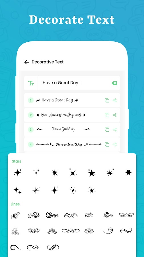 • Использование — это приложение невероятно просто в использовании благодаря простому пользовательскому интерфейсу, вы сможете создать свой причудливый текст с помощью множества символов на выбор, и, что самое приятное, стильный текст можно написать во многих уникальных текстовых стилях.