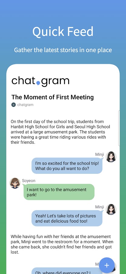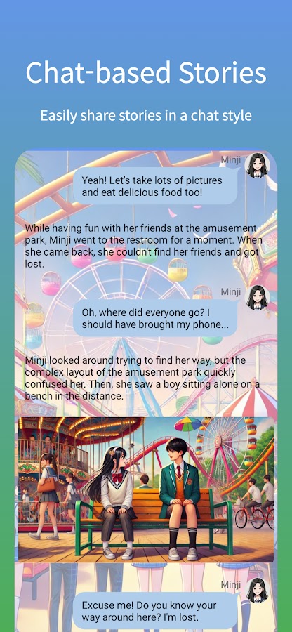 Обмен историями в стиле чата: легко пишите и делитесь историями в стиле чата.