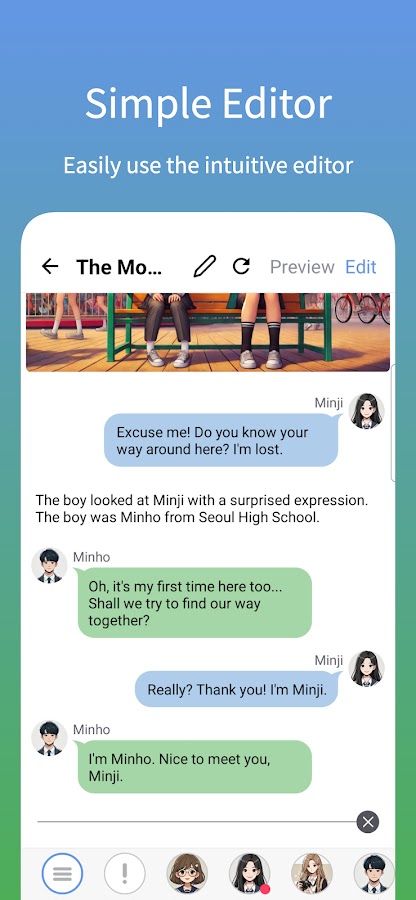 Простой редактор: интуитивно понятный редактор, который каждый может легко использовать для создания собственных историй.