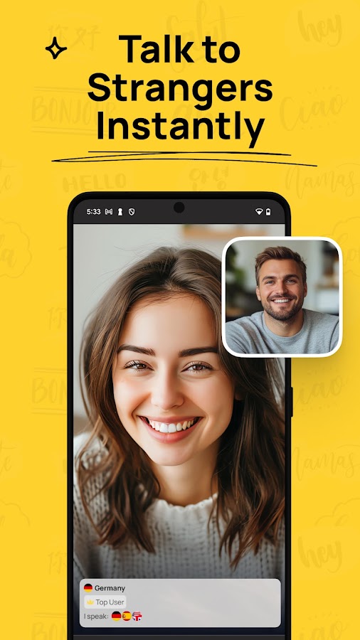 • Мгновенно общайтесь с незнакомцами в видеочате — никакой регистрации не требуется, просто весело. 🎥💬