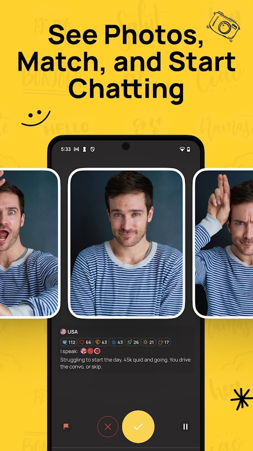 • Просматривайте фотографии незнакомцев и общайтесь в видеочате, когда вы оба соглашаетесь встретиться. 💫💬