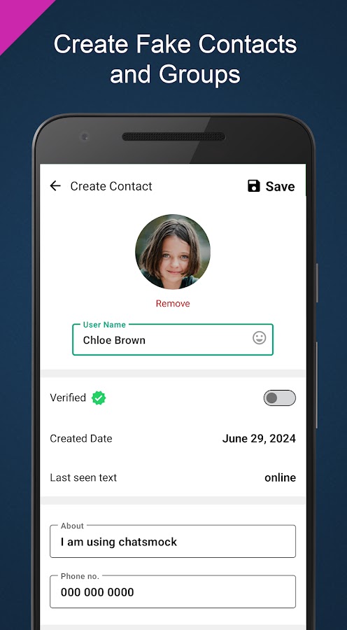 Fake Chat позволяет создавать реалистичные имитации разговоров в чате и делиться ими с друзьями. Создавайте контакты и разговоры для розыгрышей и веселитесь с друзьями и семьей.