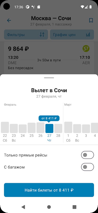 Приложение для поиска самых дешевых цен на авиабилеты позволяет: