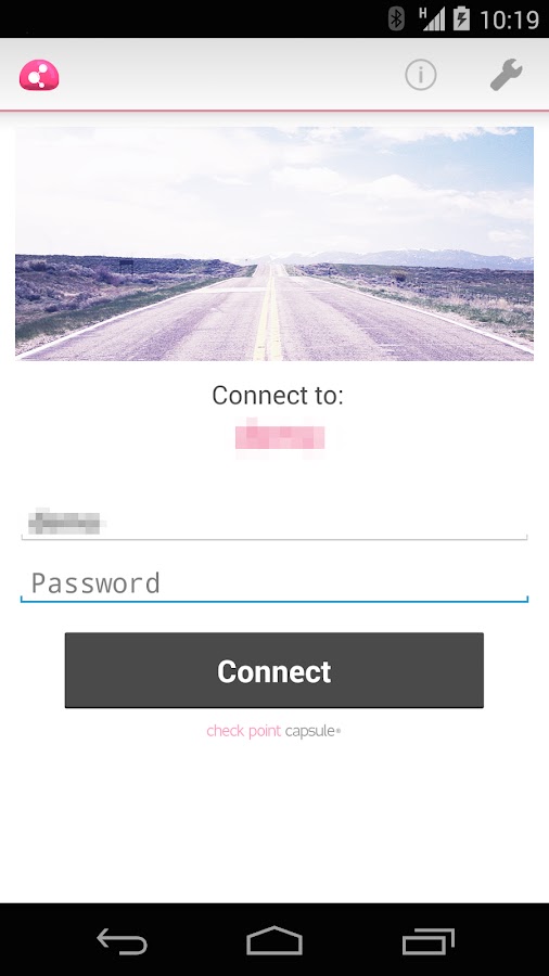 Это приложение подключается к КПП шлюза безопасности. Пожалуйста, обратитесь к администратору безопасности для первой установки. Для применения SSL VPN портала, пожалуйста, скачайте «Check Point Capsule Workspace» приложения.